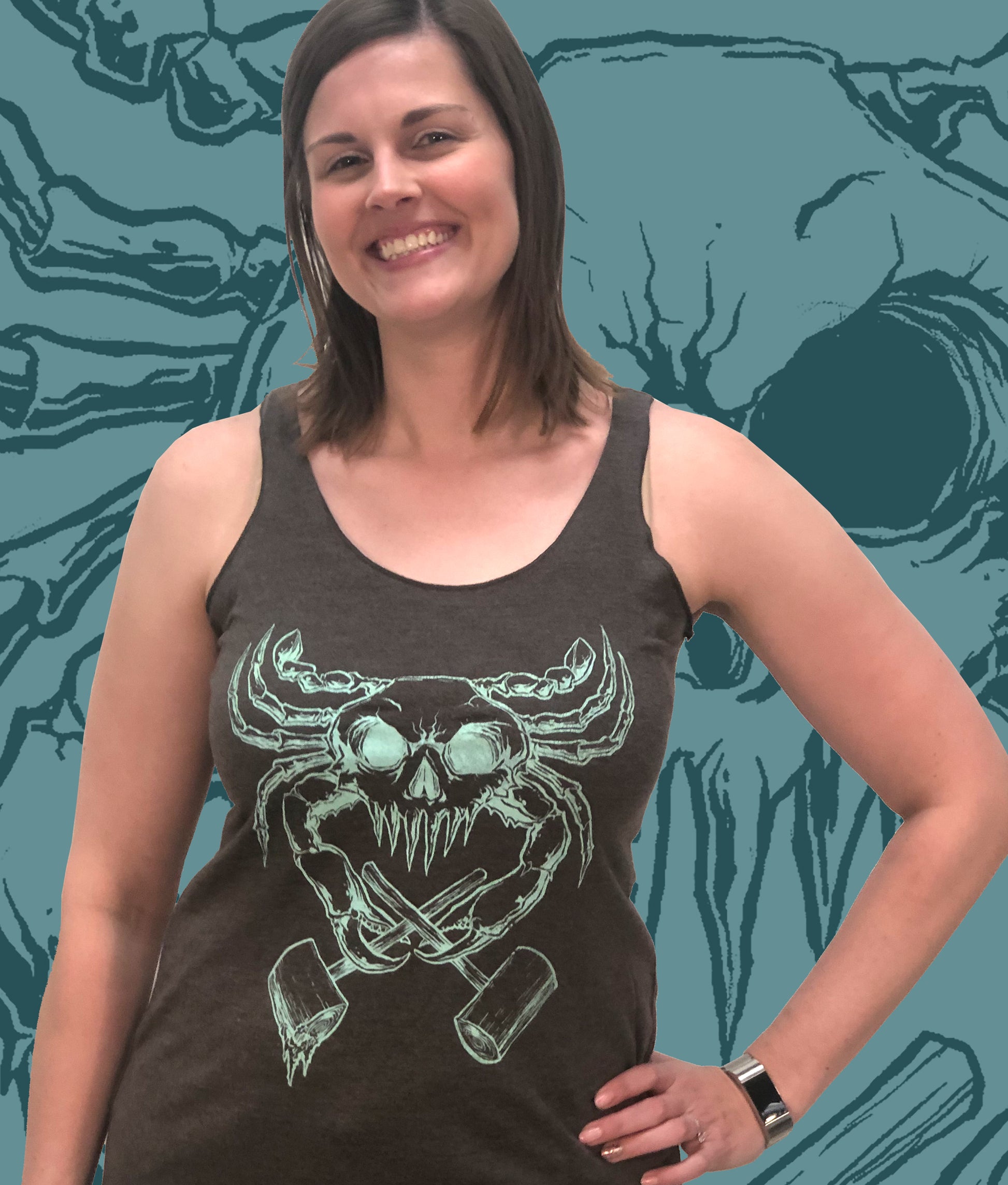 This is a screen printed shirt with MINT ink on a VINTAGE BROWN colored Racerback TANK (made by Next Level Apparel). All illustrations are original, come straight from my sketchbook, and are printed in the Spaghetti Kiss dungeon (my basement)!