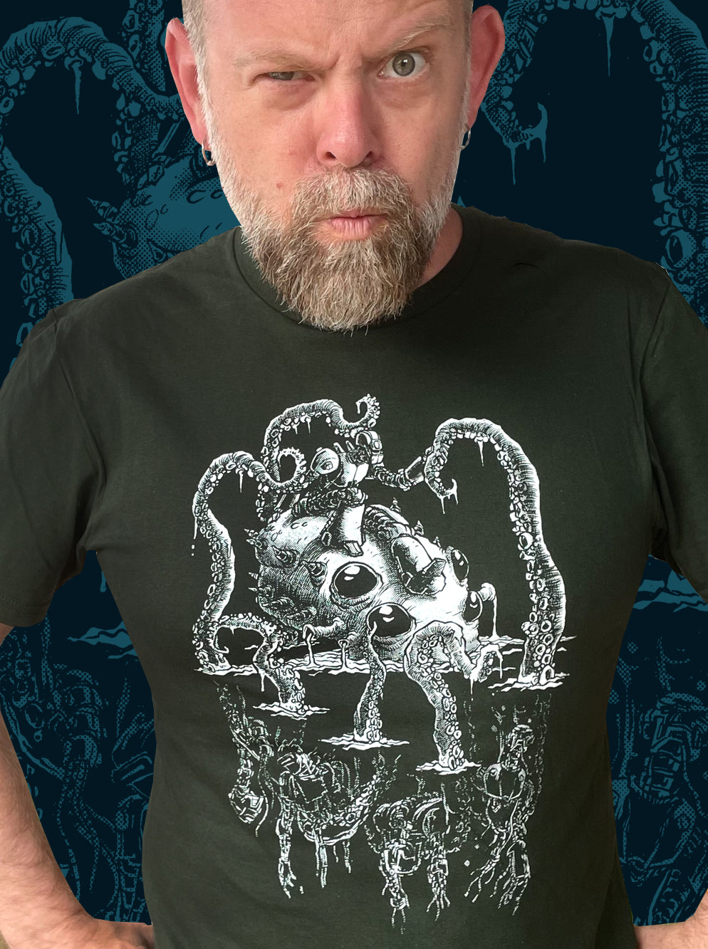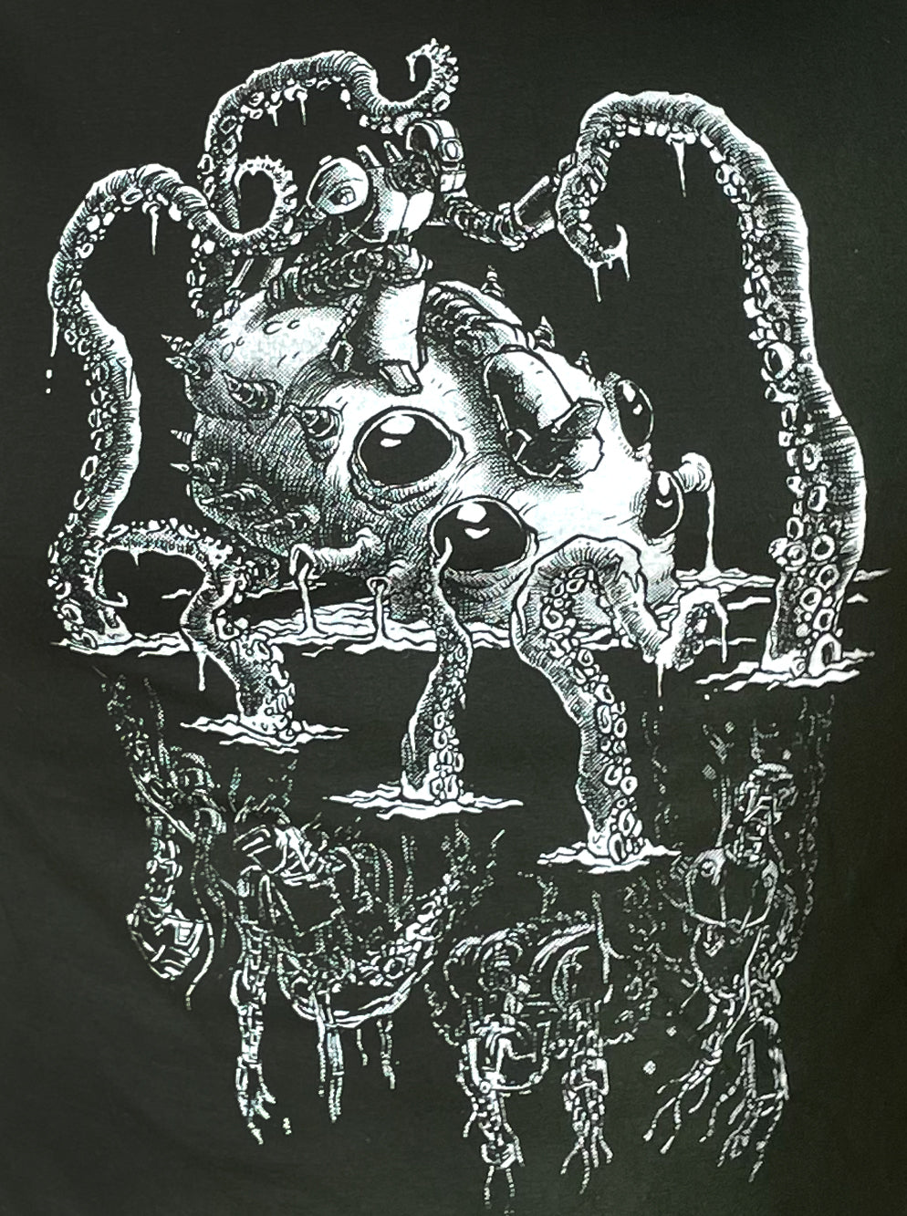 HAS THIS CURIOUS AUTOMATON FOUND A NEW TENTACLED FRIEND, OR IS HE GOING TO BE PART OF THIS KRAKEN'S RUSTY COLLECTION?