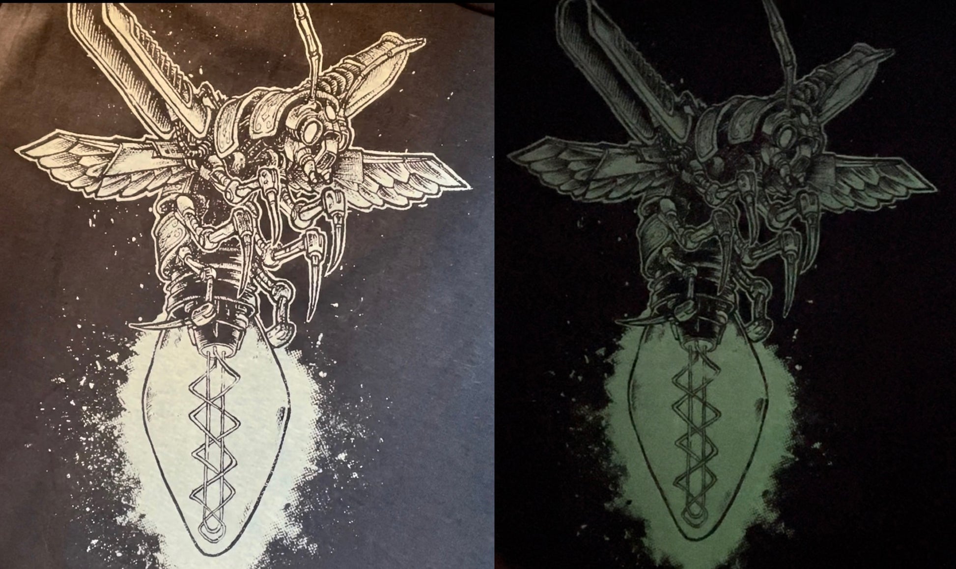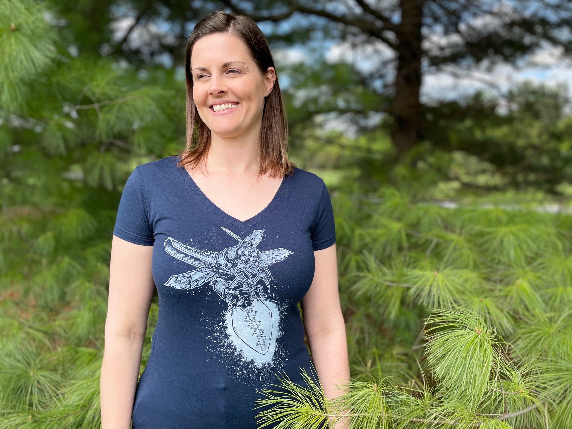 This is a screen printed shirt with GLOW IN THE DARK ink (WHITE) on a MIDNIGHT NAVY Next Level Women's V-neck tee. All illustrations are original, come straight from my sketchbook, and are printed in the Spaghetti Kiss dungeon (my basement)!