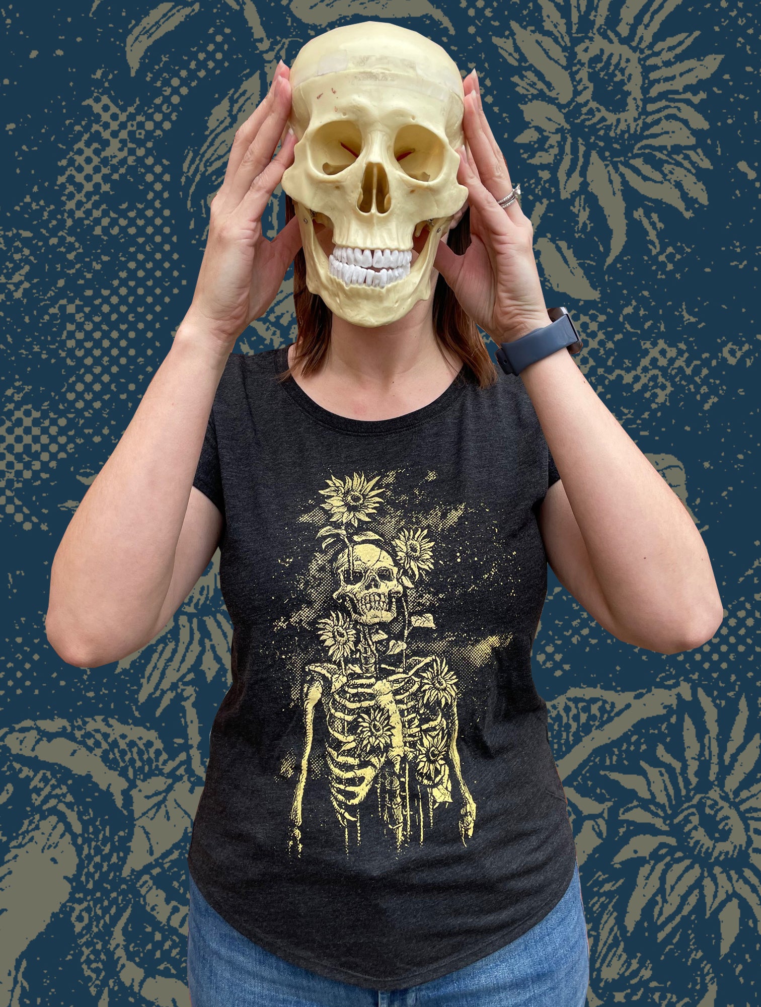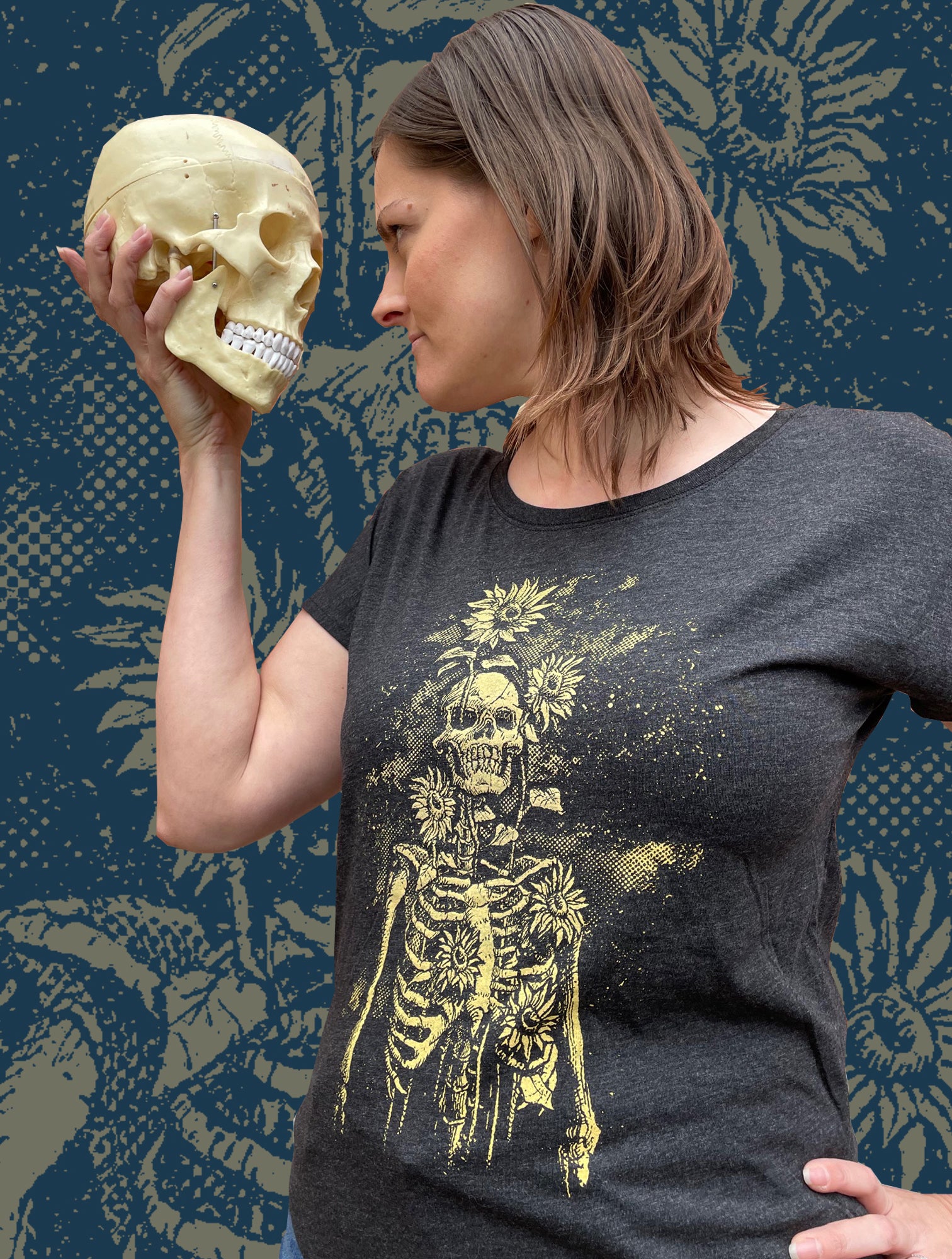 Sunflowers and Skeletons - Ladies Tri-blend Dolman Shirt
