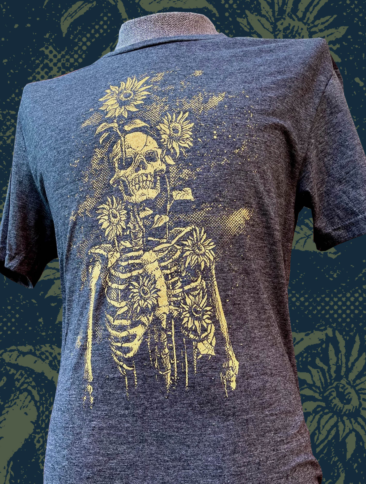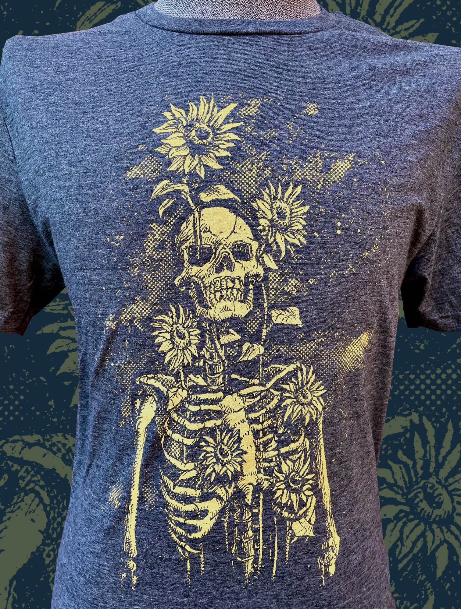 Sunflowers and Skeletons - Unisex Crew Neck Tee